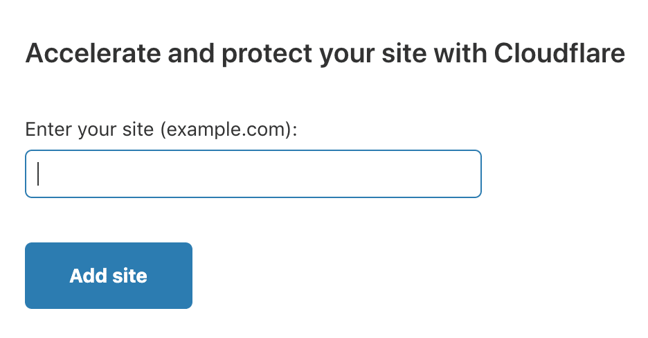 On the next page, enter your site’s domain in the text field beneath the “Accelerate and protect your site with Cloudflare” header and click “Add site”.