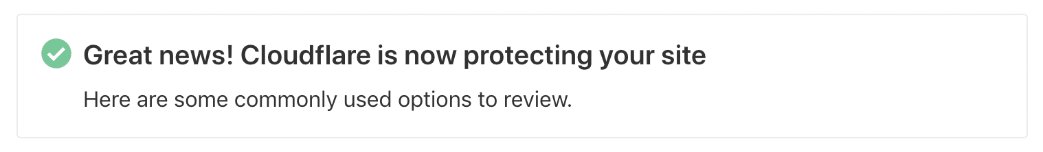 Once that’s complete, you’ll get a message confirming Cloudflare has activated.