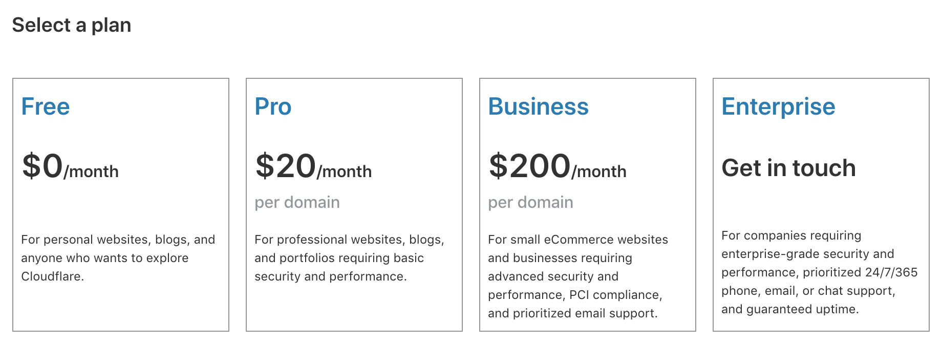 Choose a Cloudflare plan