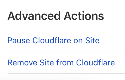 3. Click Pause Cloudflare on Site.