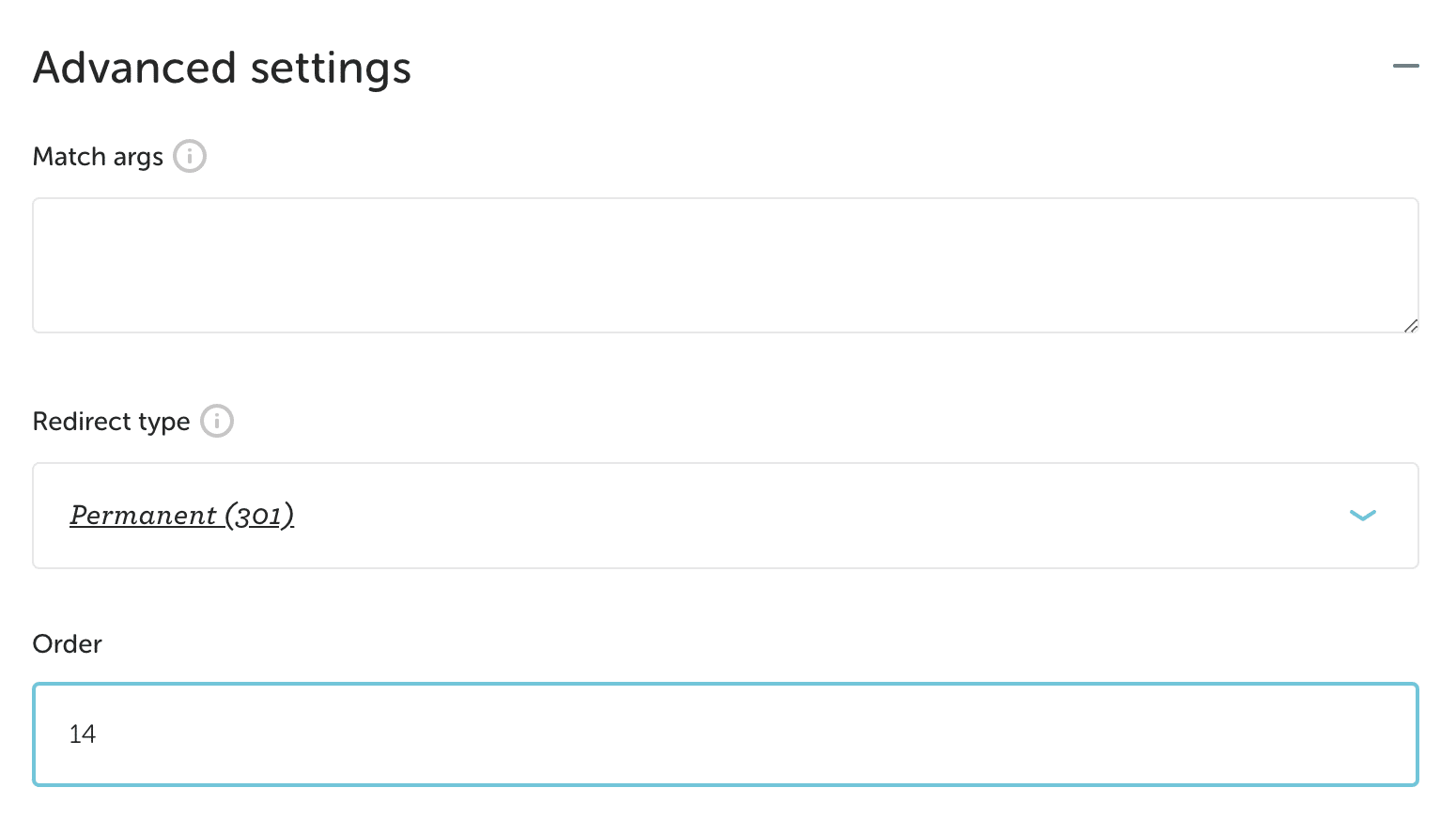 Click Advanced Settings to reveal this field when editing an existing redirect.