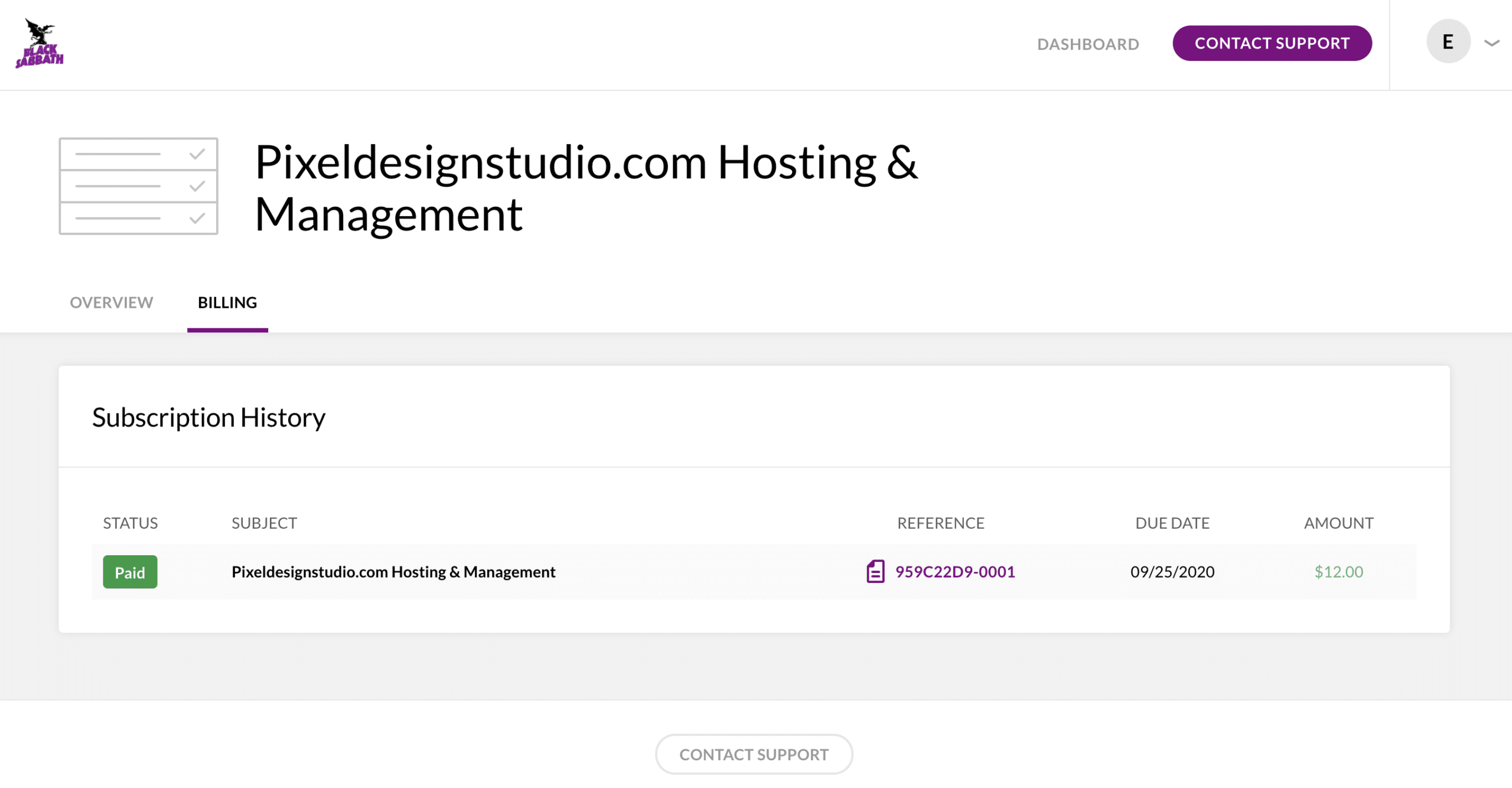 The client can also view a complete billing history associated with their invoice: