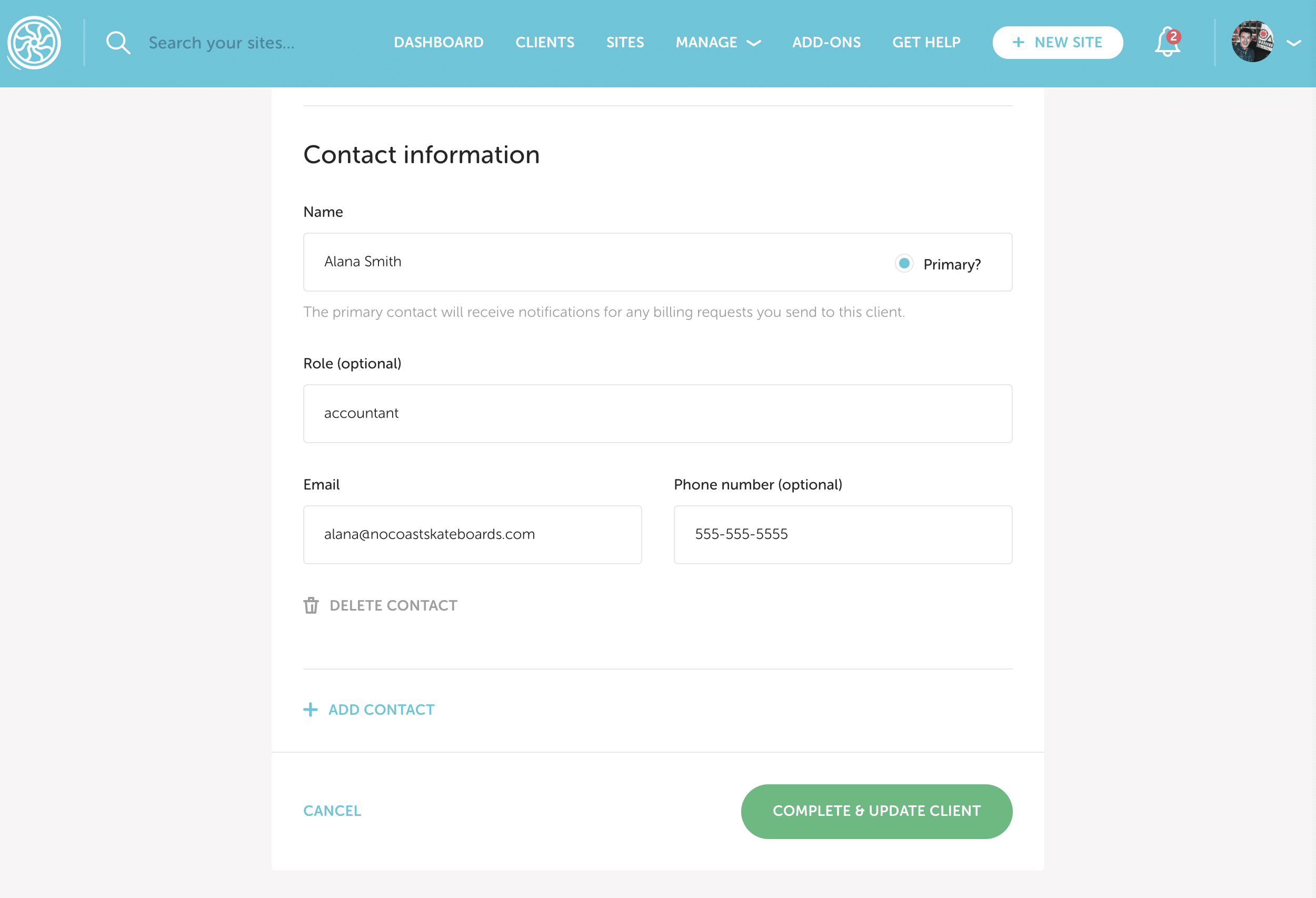 If your clients would like to have multiple contacts on file (owner, accountant, main POC, etc.), you can: