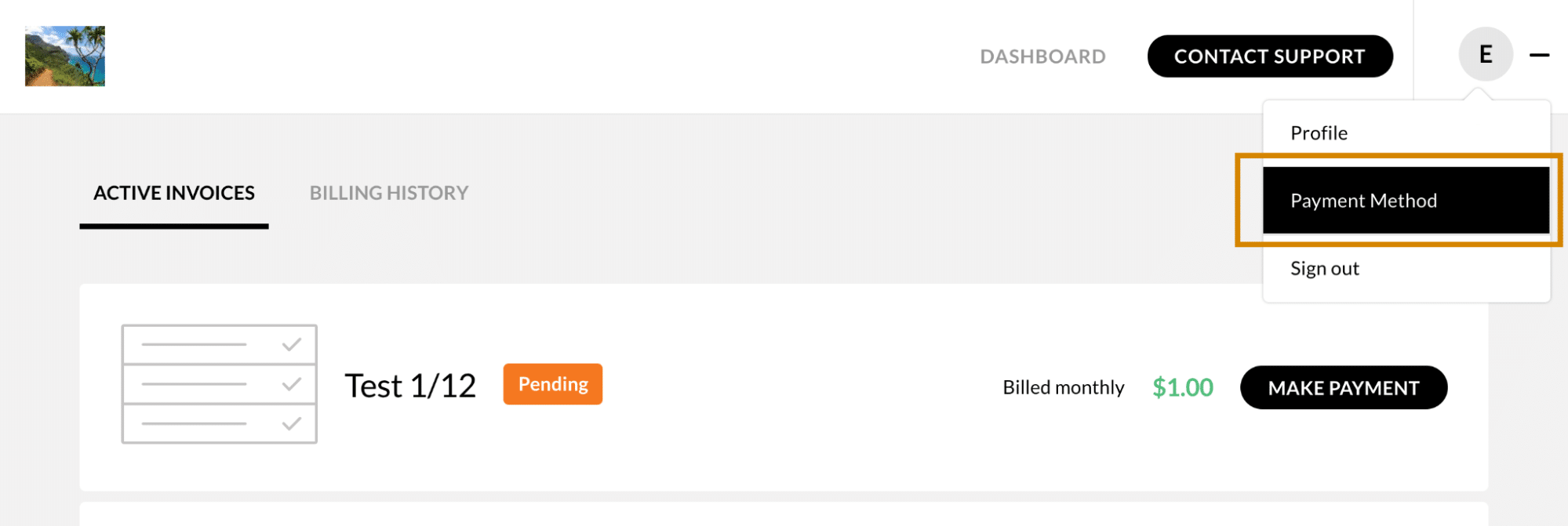 Once you create and send off an invoice (either recurring or one-time), your client will be prompted to create a client portal account. Once created and logged in, they will be able to review the pending invoice details. At this point, they will be able to add a payment method on file (and in turn, pay the pending invoice).