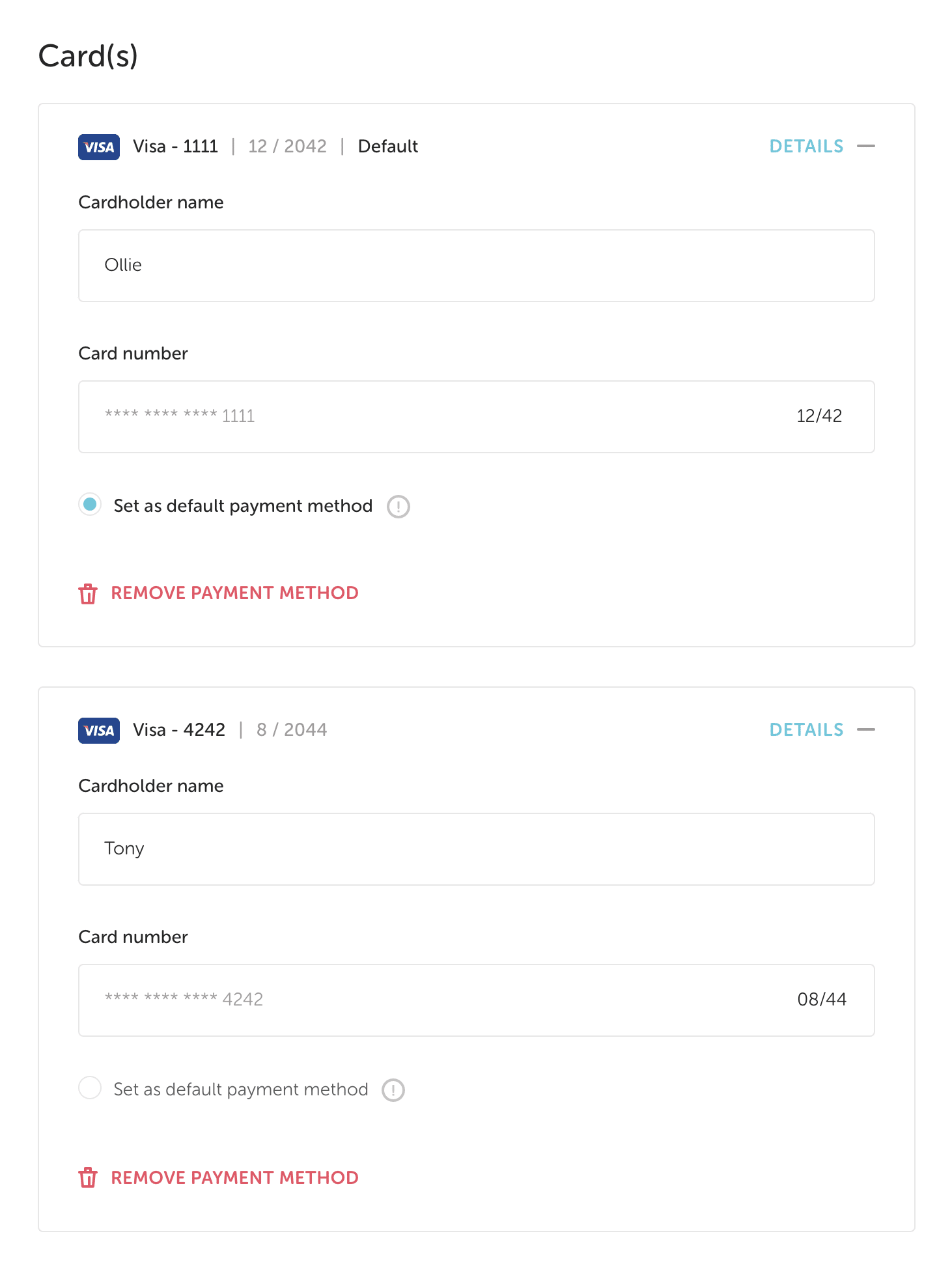 You or your clients have the ability to denote a payment method on file as a default payment method. The default payment method will be auto-filled for all future payments and will not be applied to any active subscriptions.