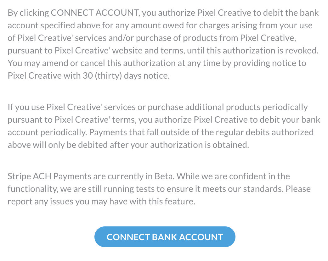 Learn more from Stripe’s ACH guide.
