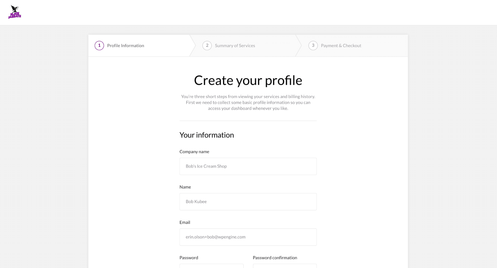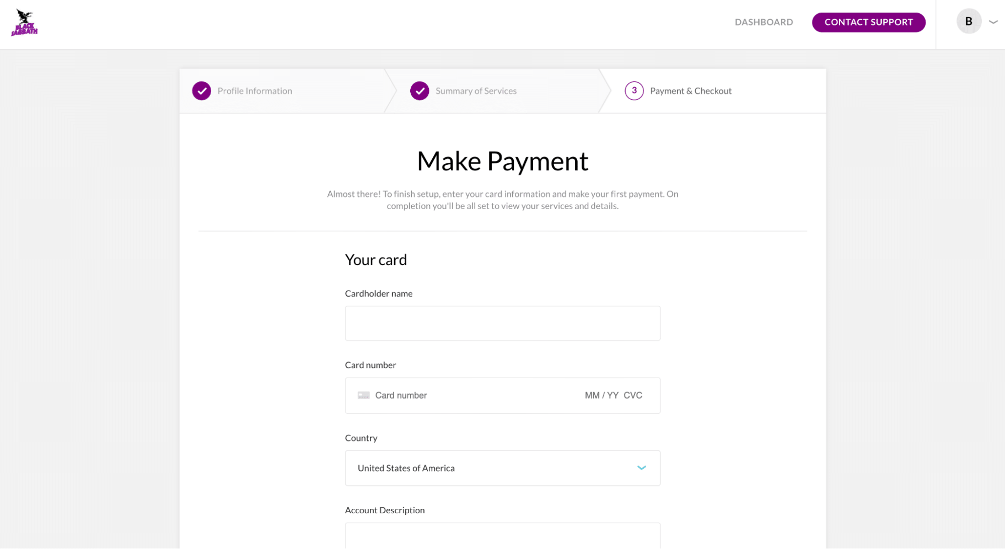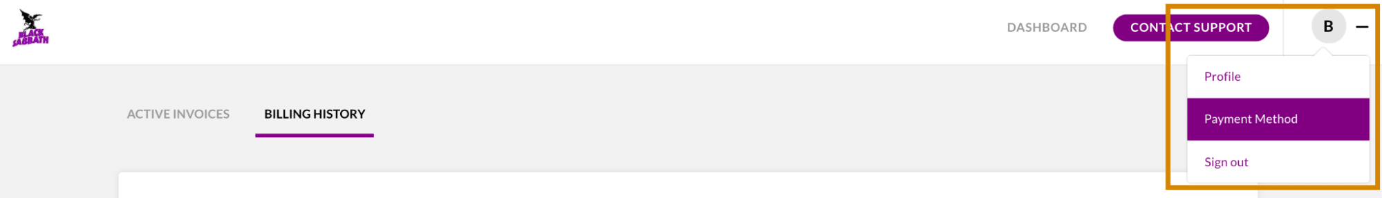 Your clients can view their profile, update their payment methods or sign out by clicking on their user icon.