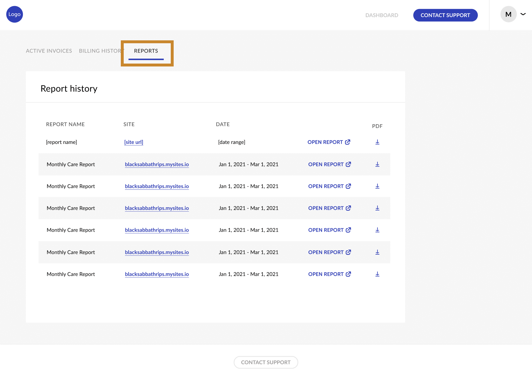 Your client can view the entire history of Client Reports for each of their sites. Haven’t set up these free reports for your client yet? Learn more.
