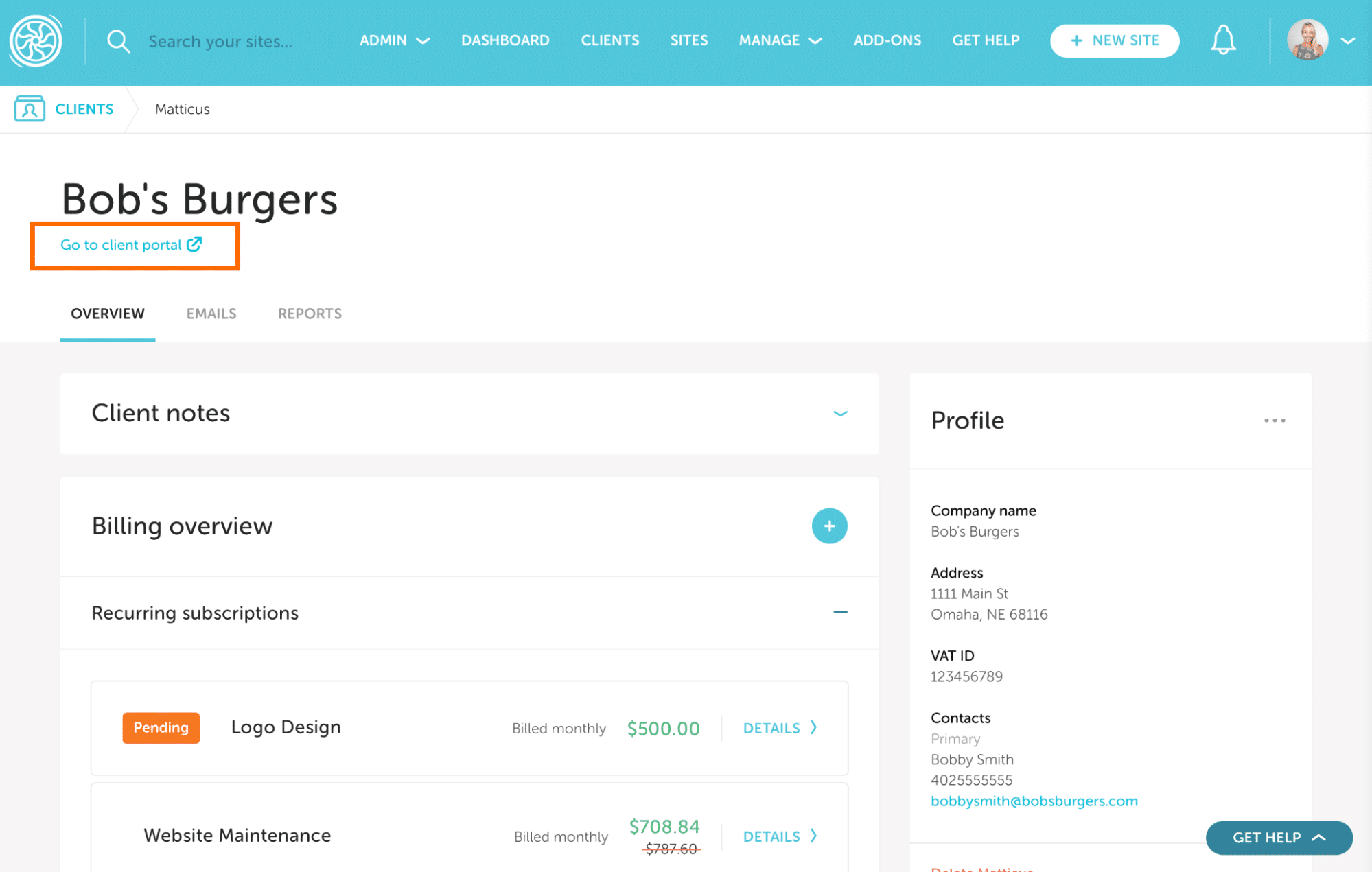Growth Suite’s Client Portal is where your clients can securely make payments, view invoices, update their payment methods, and contact your agency.