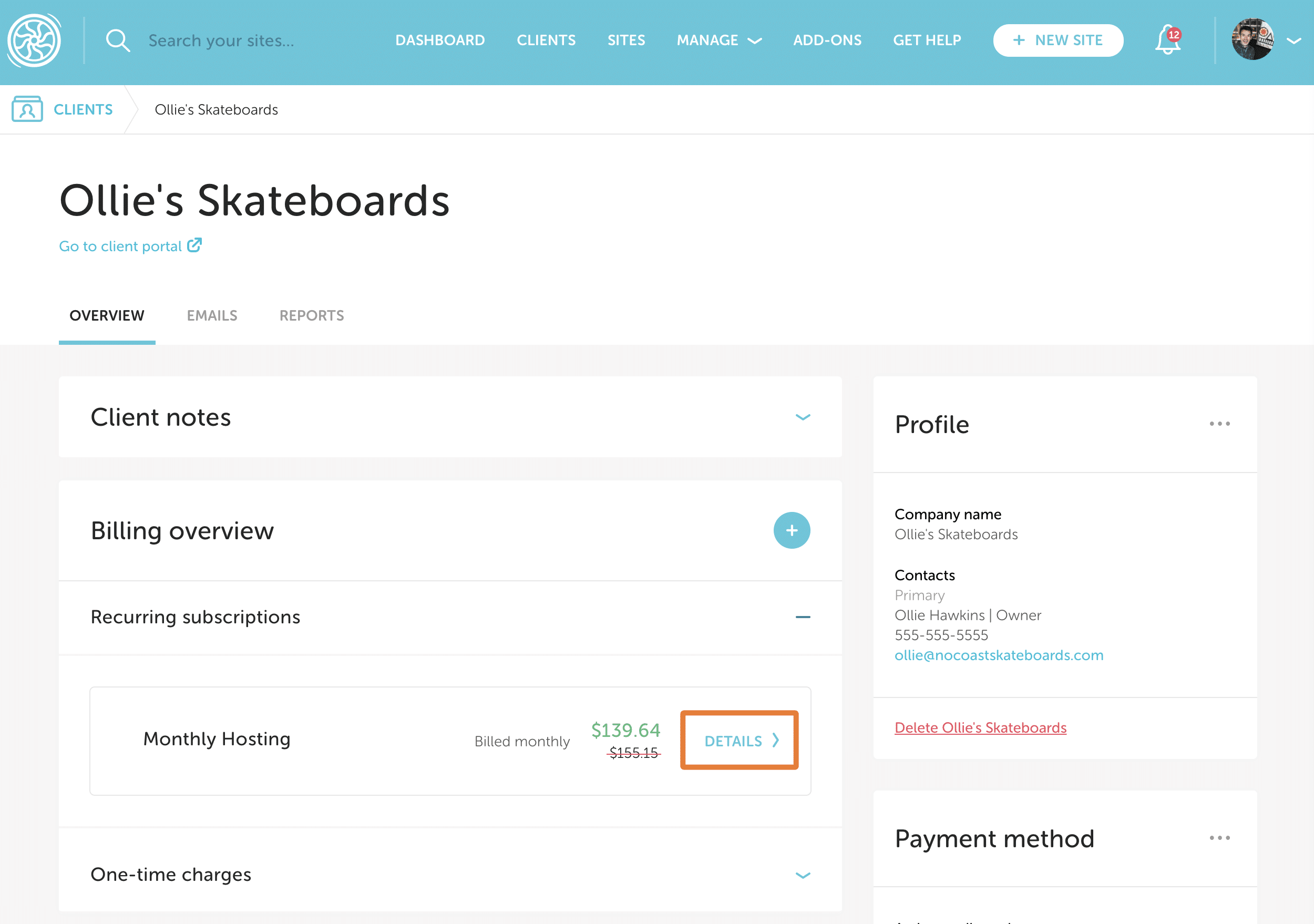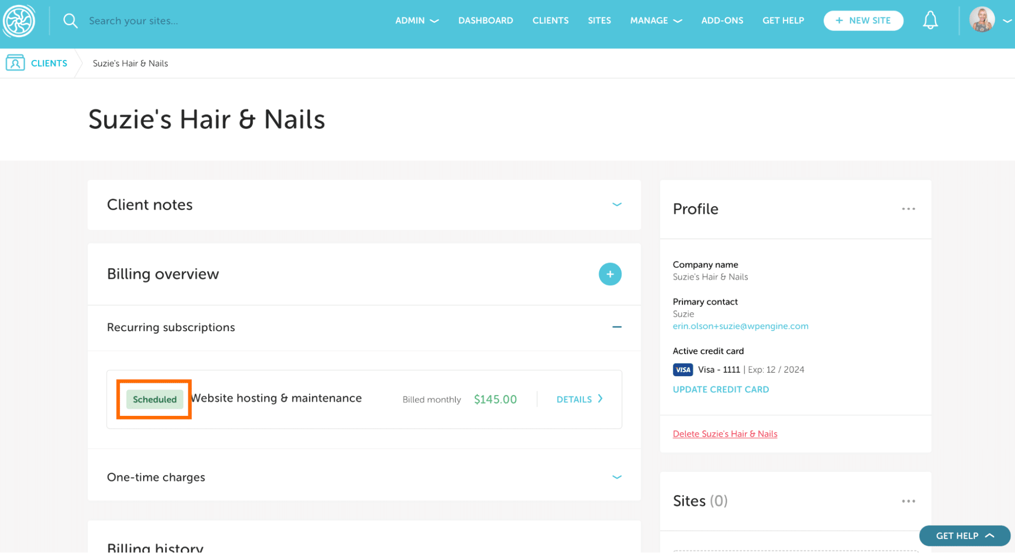 This subscription is active and will continue to charge your client’s payment method on file on the recurring cadence. No action to take here – just sit back and relax!
