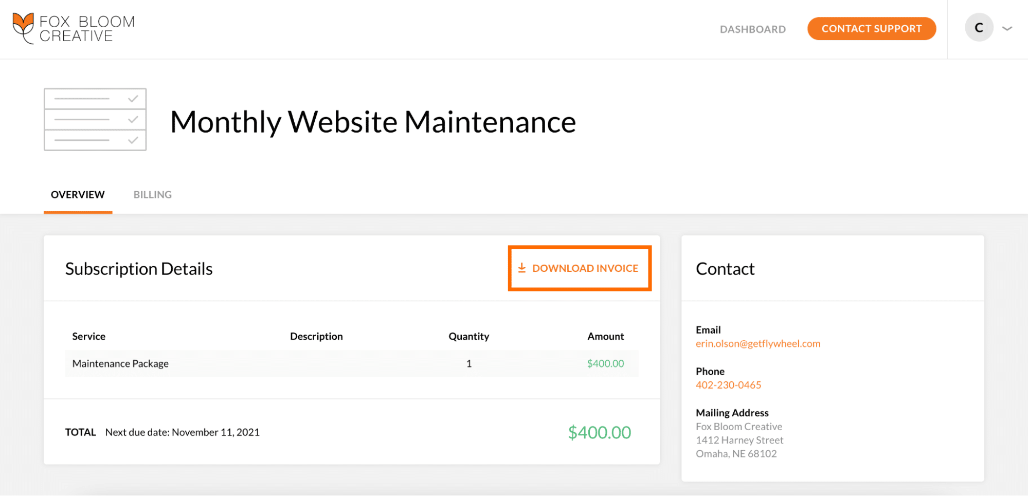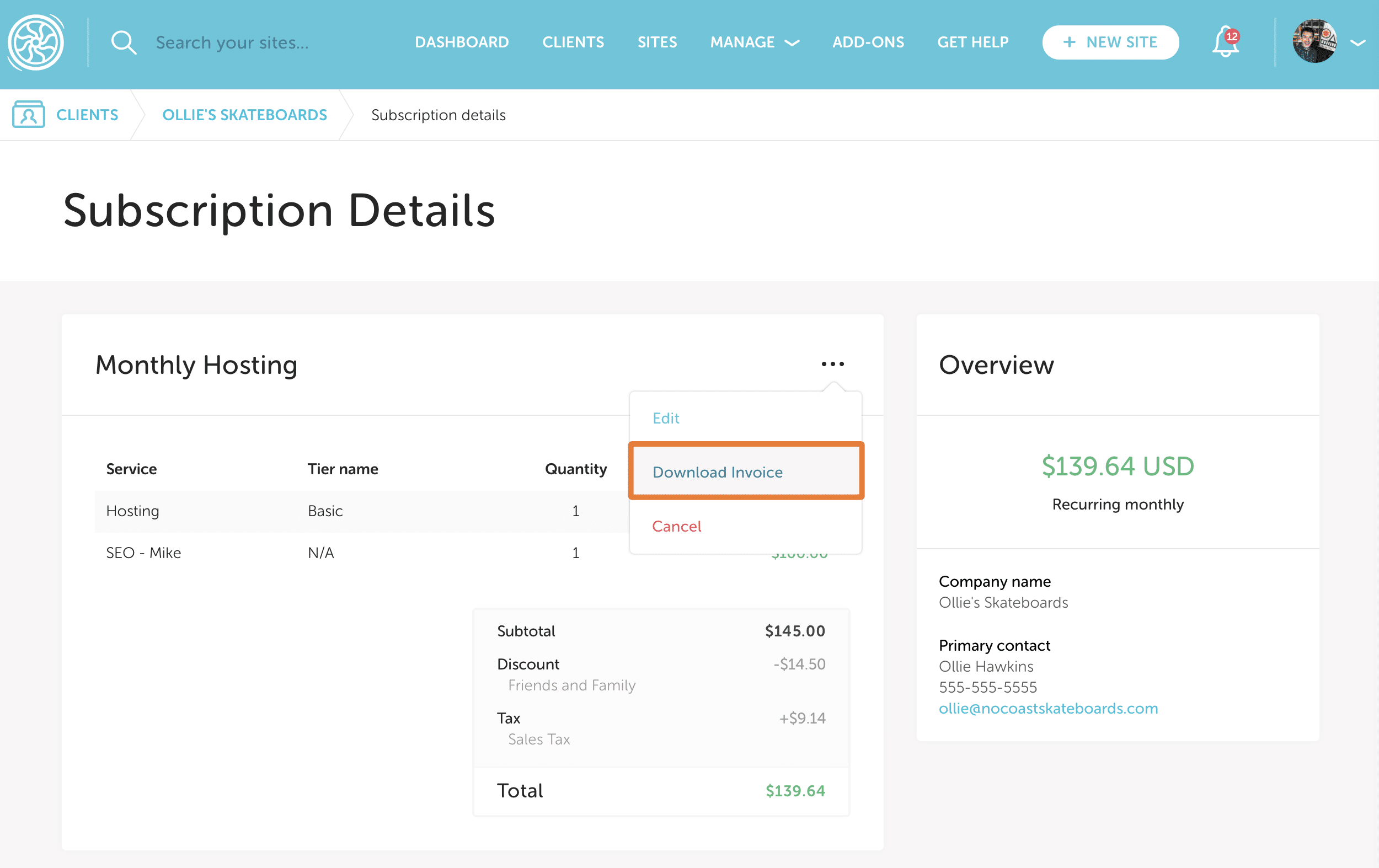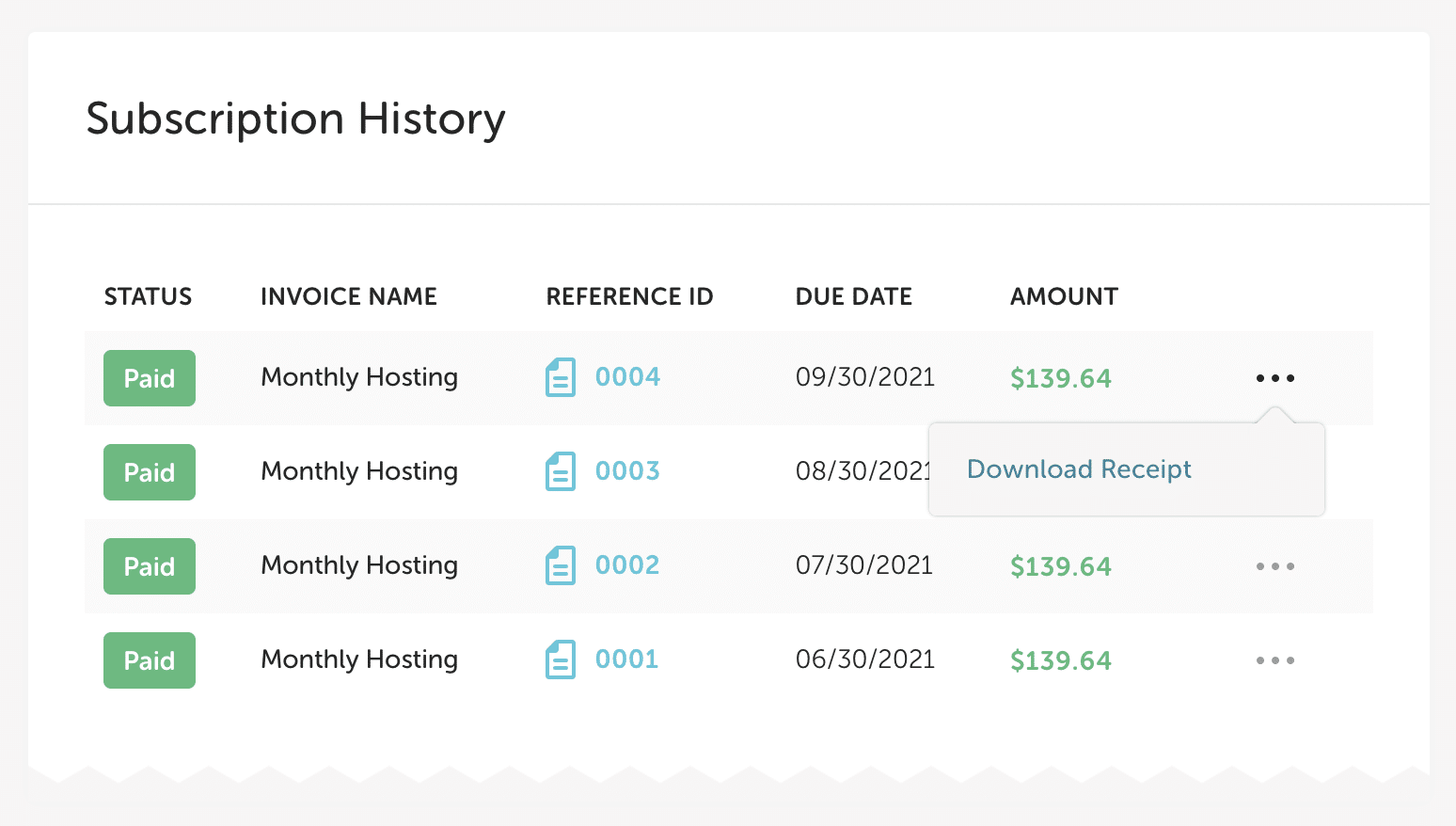 With Growth Suite, both you and your clients have access to PDFs of all upcoming and current invoices as well as previous receipts.