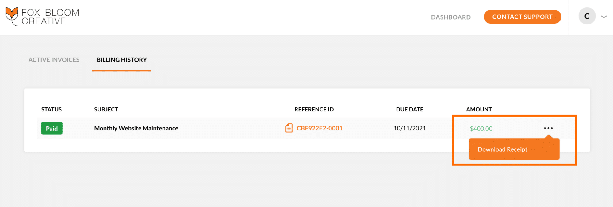 Your clients also have the ability to download invoices and receipts in the Client Portal.