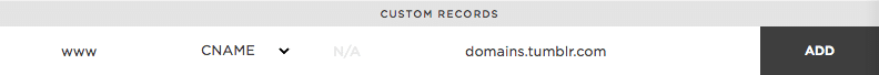 If you added the www version of your domain earlier, you’ll want to set up a CNAME record as well. A CNAME (aka canonical name) points a subdomain to another domain name.