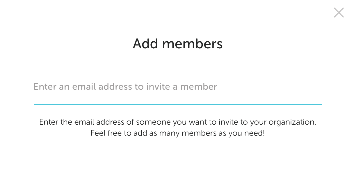 Add new members to your Organization by clicking on the Members tab, then clicking the Add Members button.