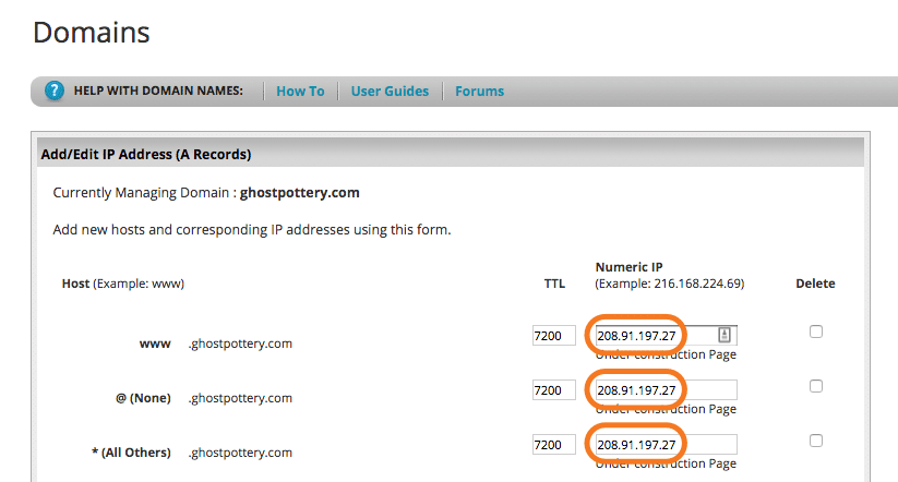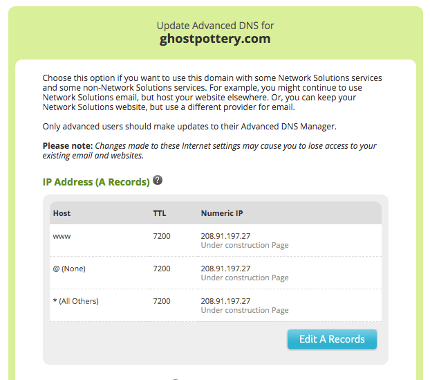 You may see additional records in this section, especially if your domain was pointed to a different host previously. For now, we’re just going to be concerned with the A records, since they are the records responsible for pointing your domain to your website.