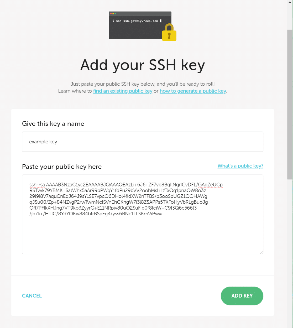 Next, you’ll take the public key you copied to your clipboard and add it to your Flywheel account.