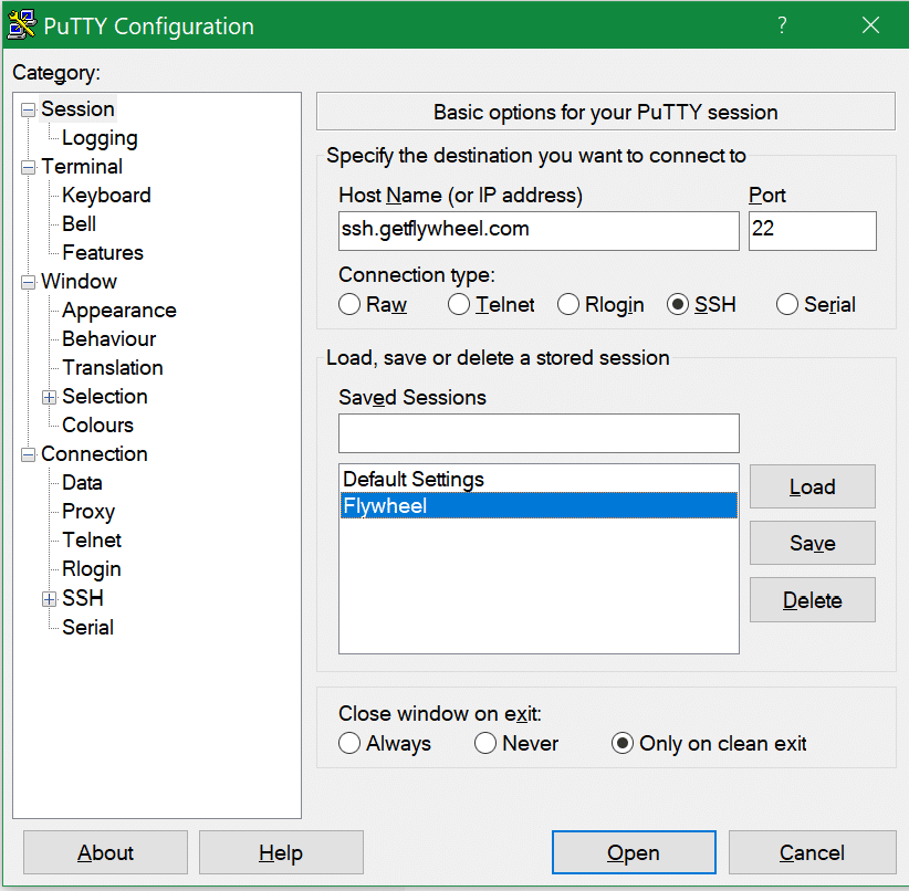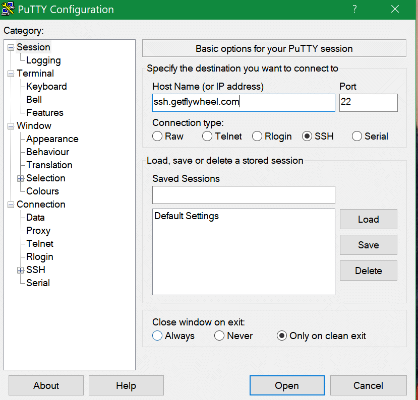 Although modern versions of Windows (such as Windows 10) support OpenSSH, not all of them do. Don’t worry, if you’re running an older version of Windows you can still connect to Flywheel’s SSH Gateway using PuTTY!