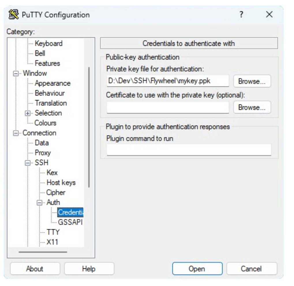 To connect to Flywheel’s SSH Gateway, you’ll need to install a public key on Flywheel and configure a private key in PuTTY. You can generate the keys you need in PuTTYgen.